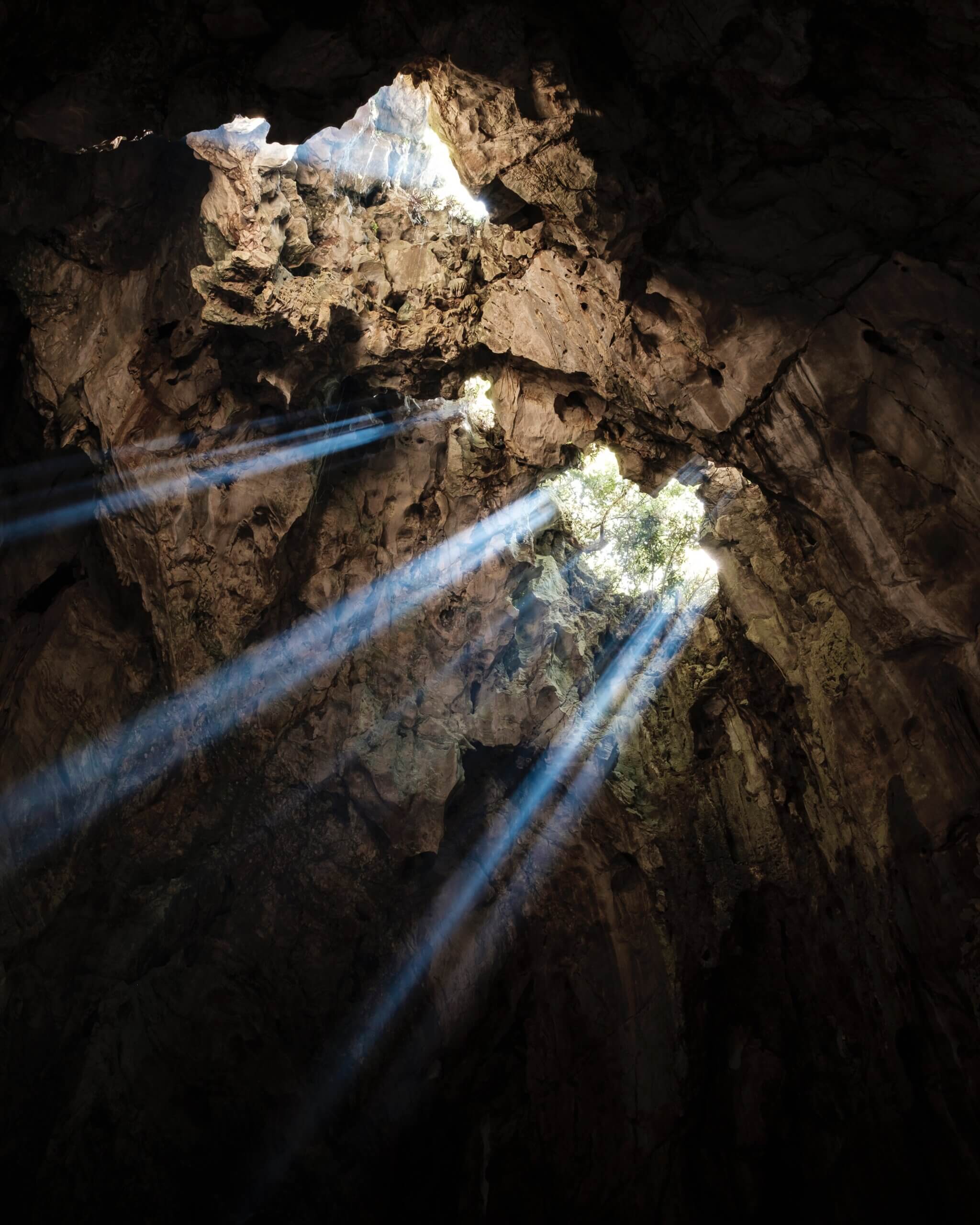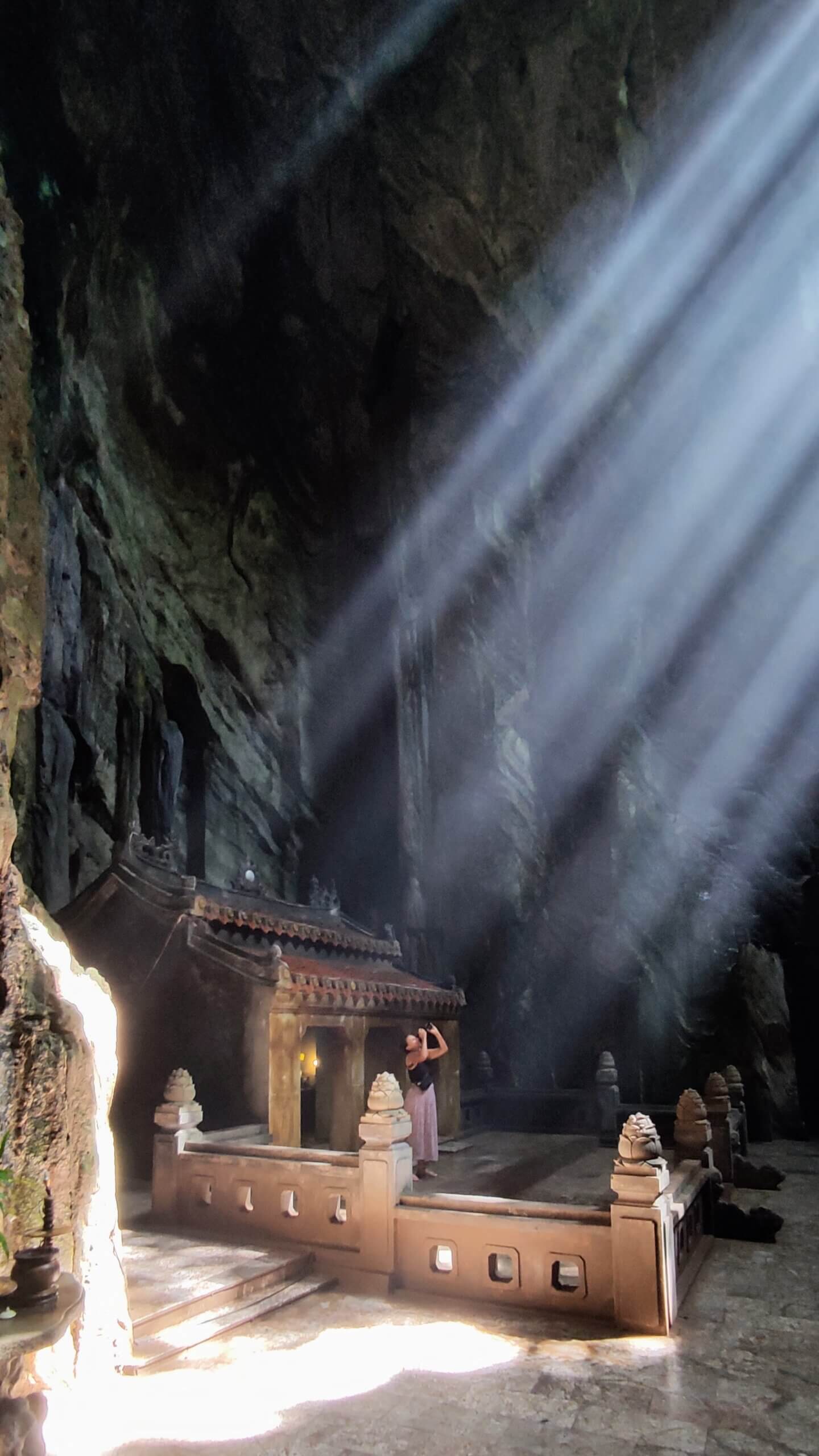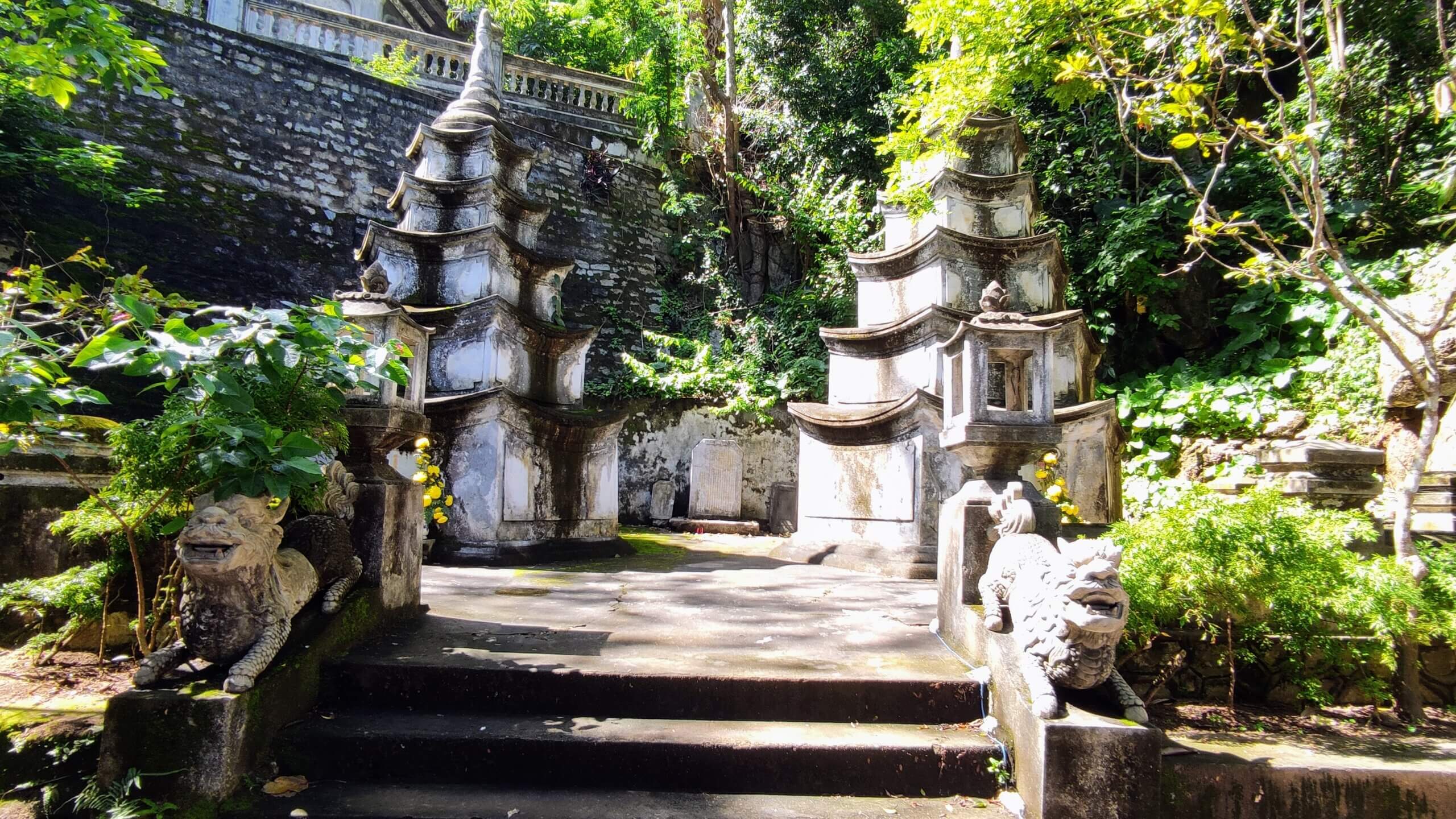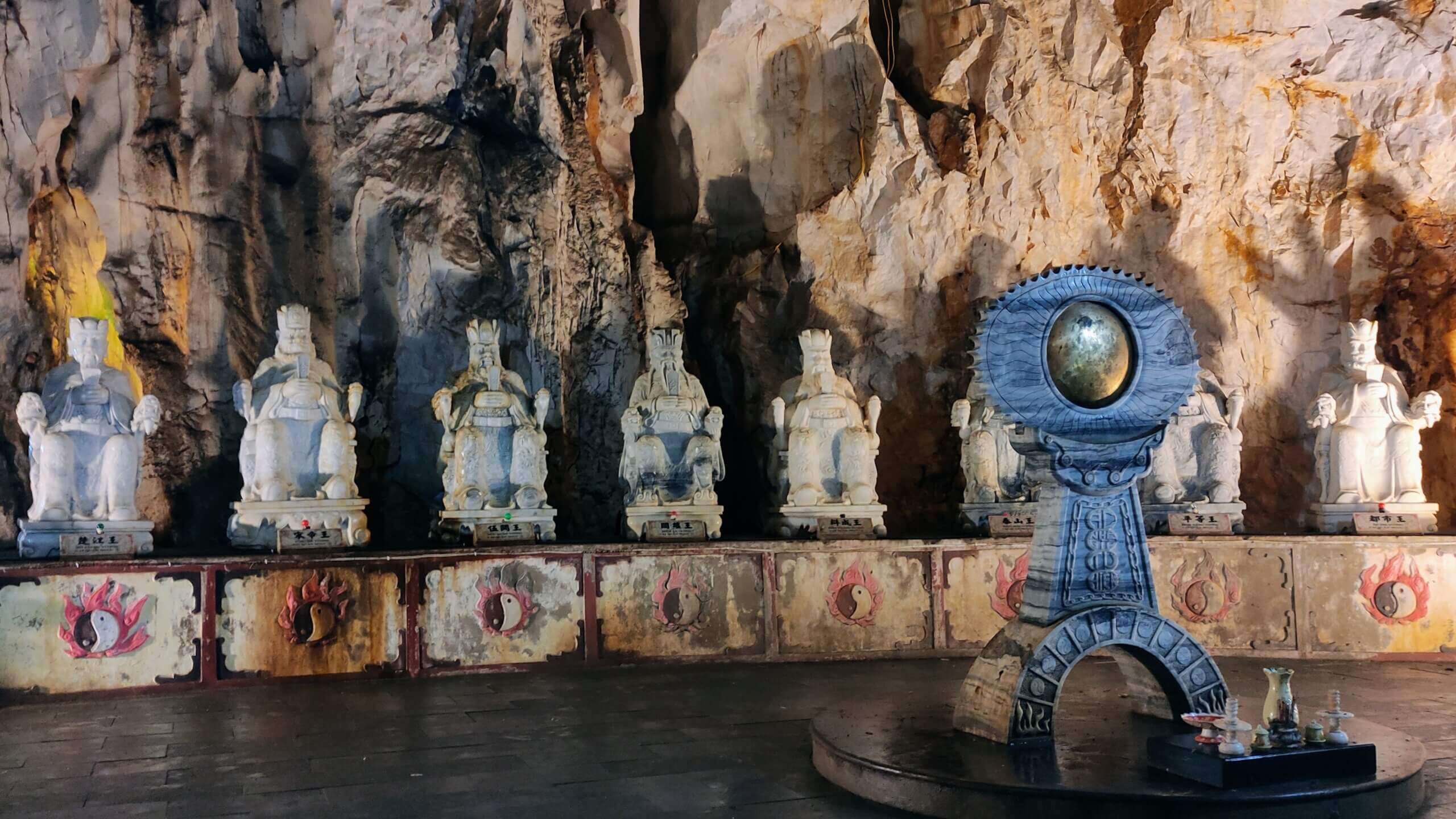Τα Μαρμάρινα Όρη φιλοξενούν πολλές μοναδικές σπηλιές που λέγεται ότι συμβολίζουν τον παράδεισο και την κόλαση. Ένα από τα πιο διάσημα σπήλαια είναι το σπήλαιο Huyen Khong, το οποίο θεωρείται ότι είναι μια αναπαράσταση της κόλασης. Το σπήλαιο είναι σκοτεινό και απόκοσμο, με στενά περάσματα και επιβλητικούς βραχώδεις σχηματισμούς που δημιουργούν μια ατμόσφαιρα φόβου και δέους. Παρά τη δυσοίωνη εμφάνισή του, το σπήλαιο είναι ένας σημαντικός προορισμός για τους πνευματικούς αναζητητές, που έρχονται να αντιμετωπίσουν τους φόβους τους και να συλλογιστούν τη φύση του καλού και του κακού.